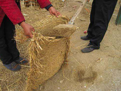 • 青年利用秸稈編制草繩 用于捆扎苗木保暖過冬